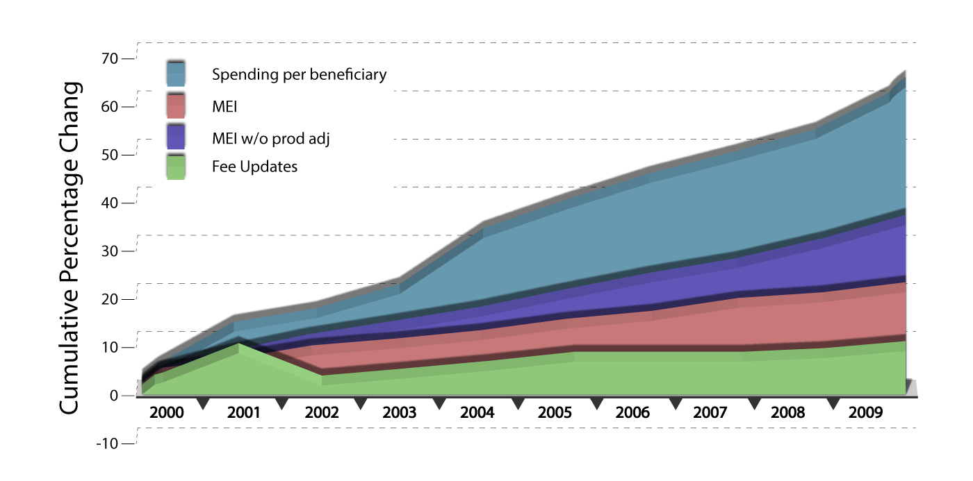 Despite Medicare’s conservative fee updates, total Medicare spending on physician services per beneficiary grew by 60 percent from 2000 to 2009. This growth rate, averaging 5.4 percent annually, underscores the influence Medicare has on the broader healthcare landscape, prompting private insurers to recalibrate their payment structures. (Frakt & Frakt, 2014)