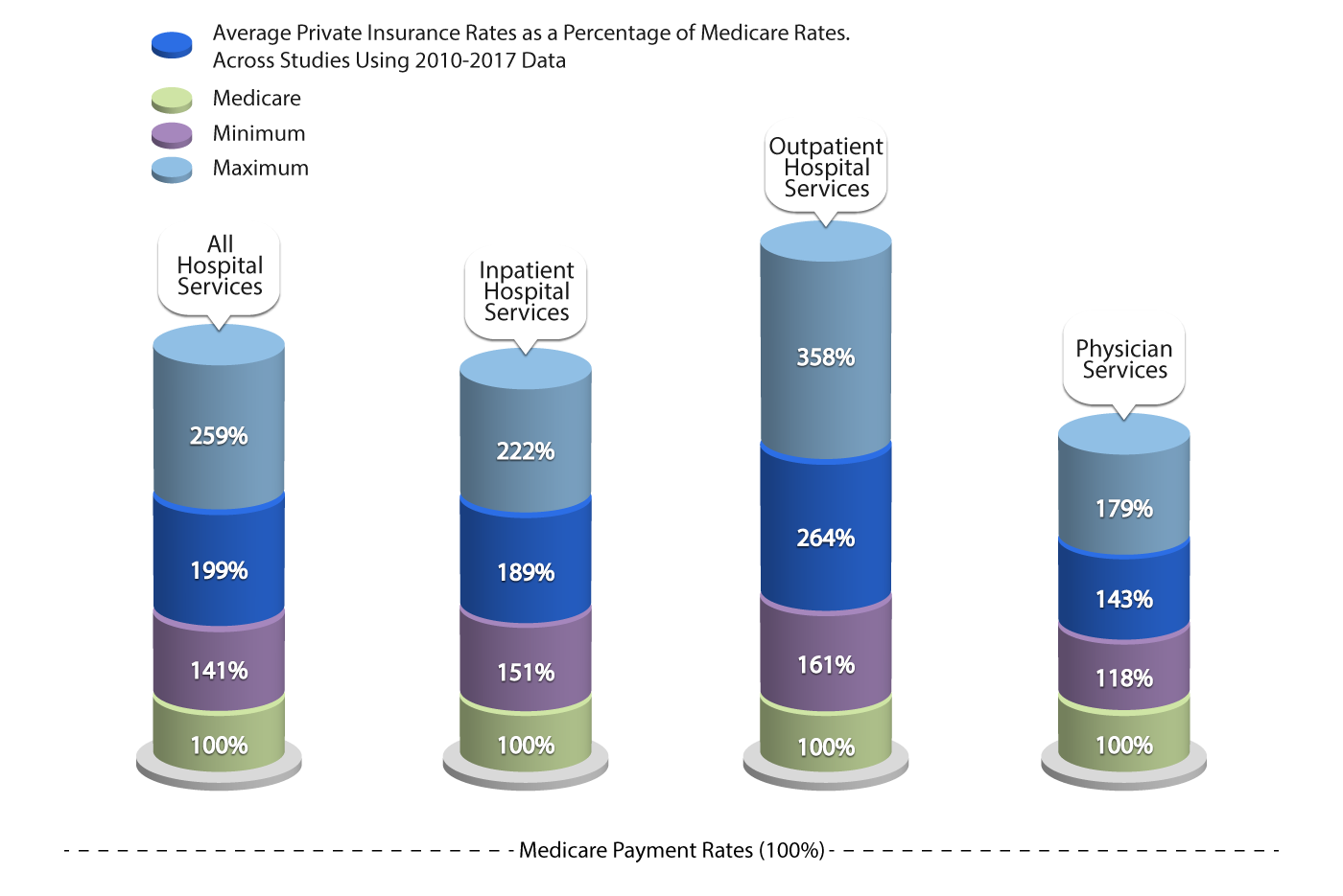 - How much more than Medicare do private insurers pay? A review of the literature | KFF. (2020, May 1). KFF. https://www.kff.org/medicare/issue-brief/how-much-more-than-medicare-do-private-insurers-pay-a-review-of-the-literature/